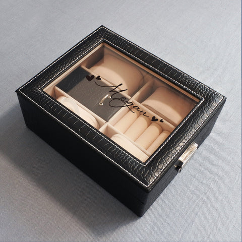 男士女士仿古鱷魚紋首飾盒帶鑰匙鎖定制扣盒,玻璃天窗所需飾品一覽無余,帶有4個手錶隔間,周圍可放小飾品,可訂製logo、slogan,也可以來圖定制。